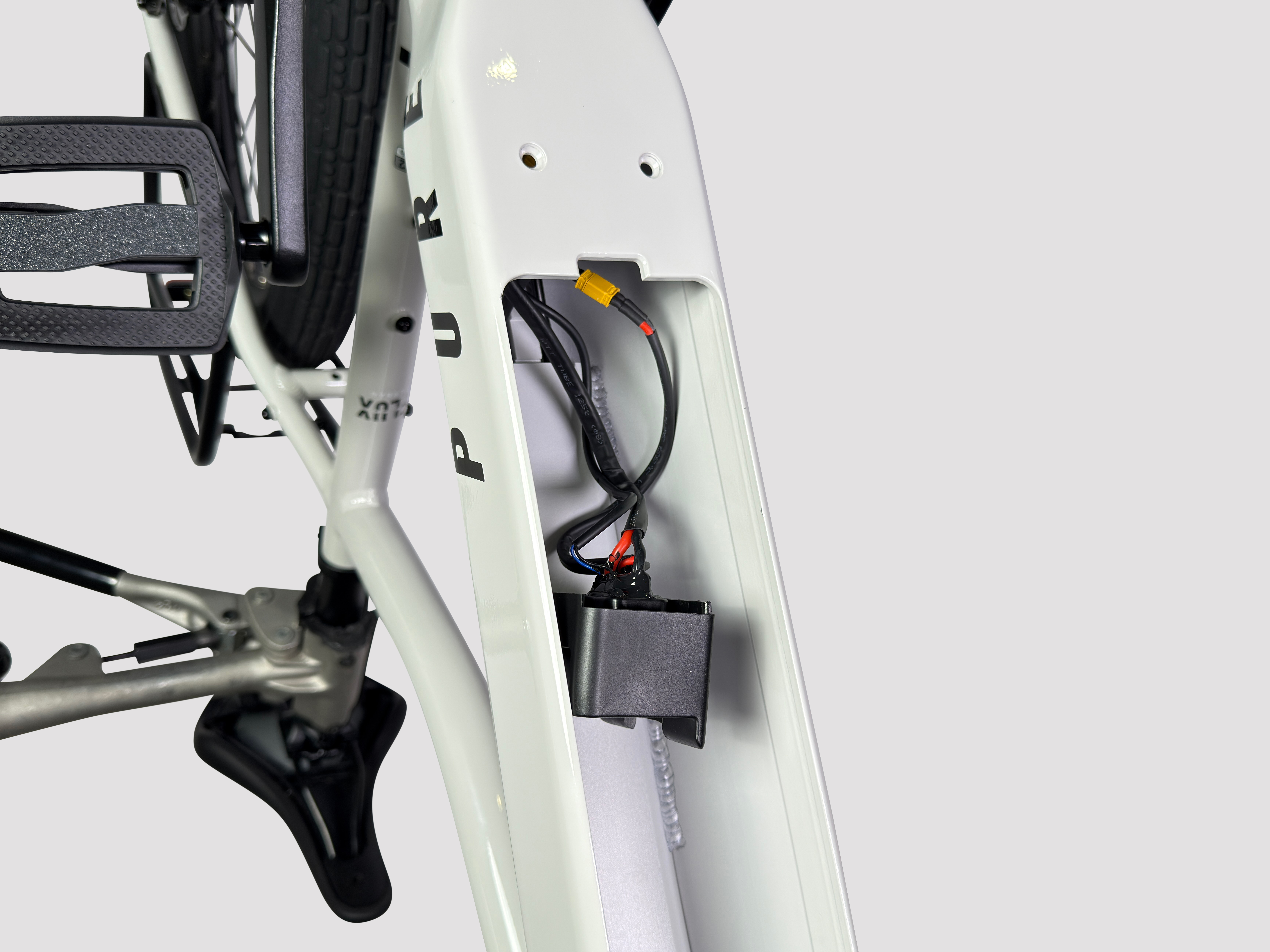 - Partially remove the controller to access the rear light cable. To create enough slack for this step, cut the 3 zip ties securing the motor cable and then unplug the rear motor cable near the rear wheel before continuing.