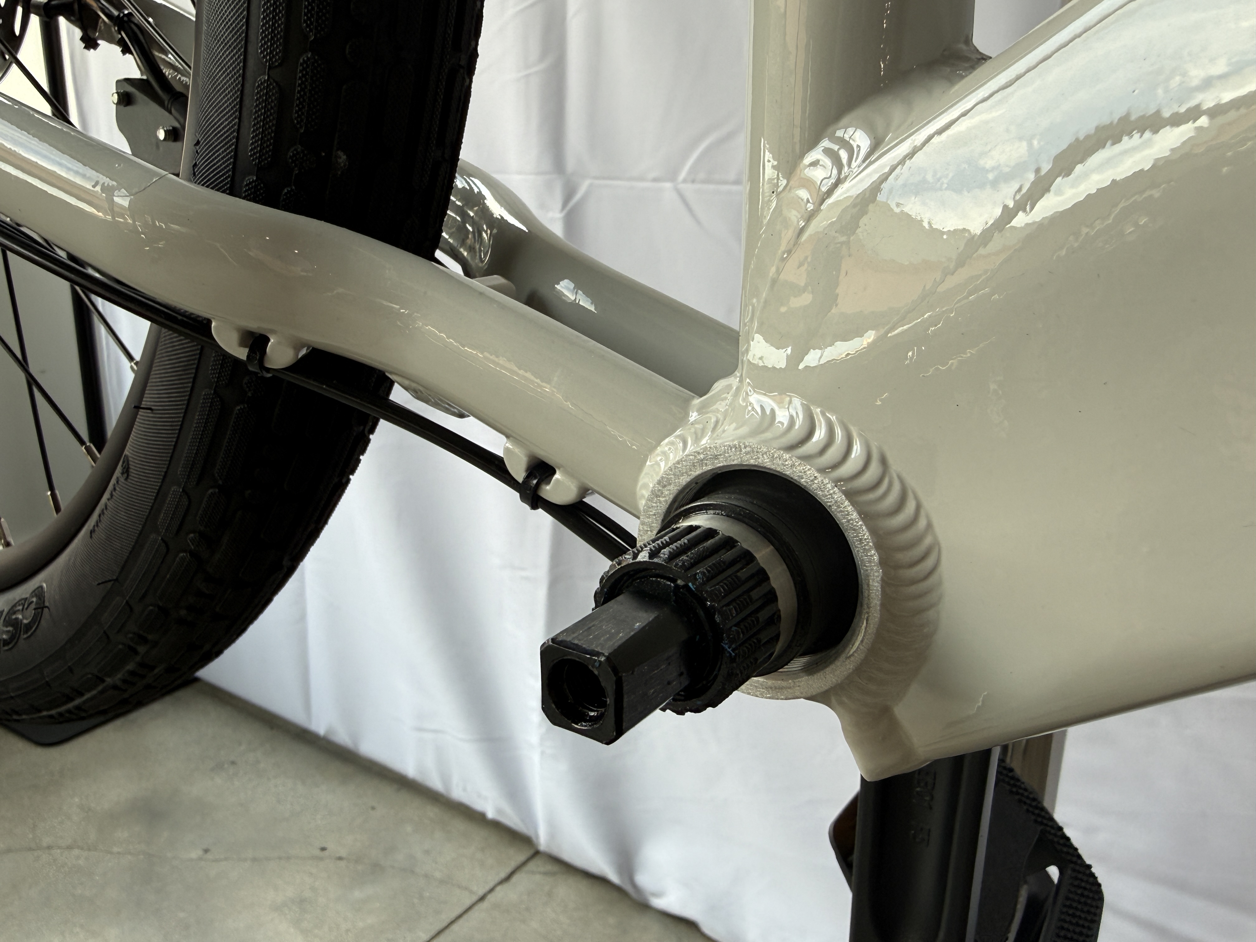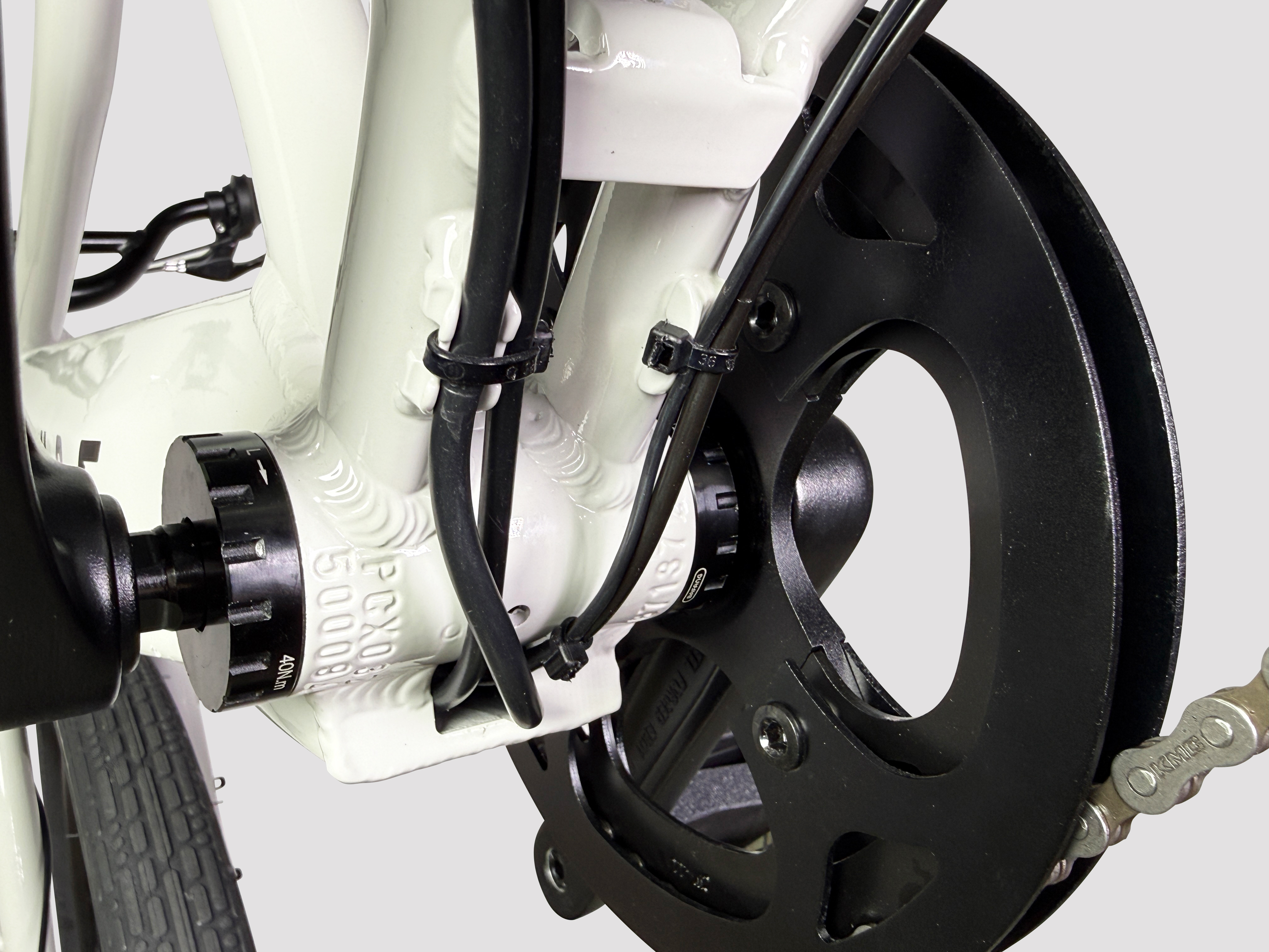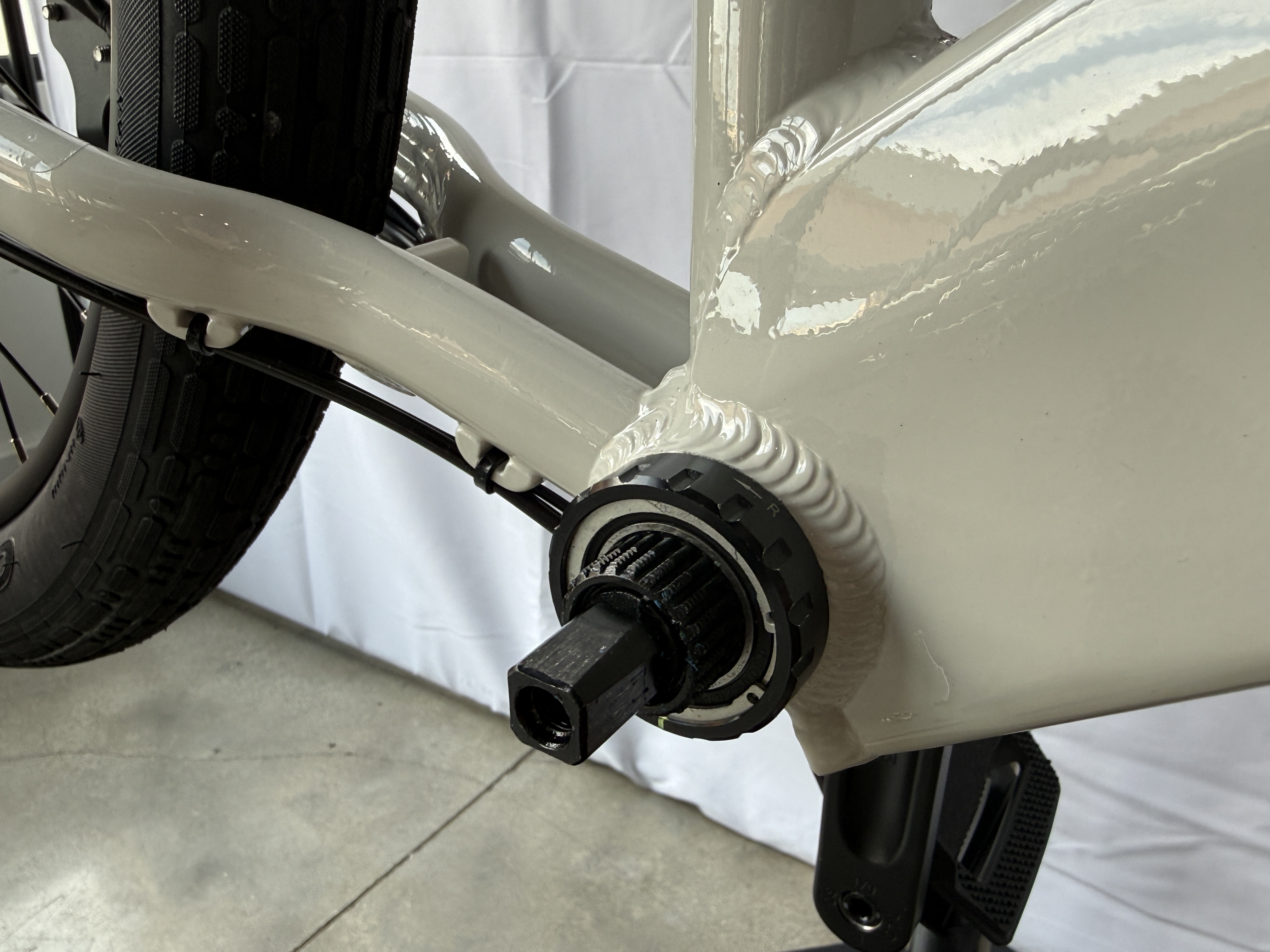 - 5. Carefully slide the bottom bracket out of the frame from the drive side. Take care note to pull too hard or too far, as the cable is connected to the controller. WARNING: Remove only enough to allow the rear light cable to pass freely through the frame.