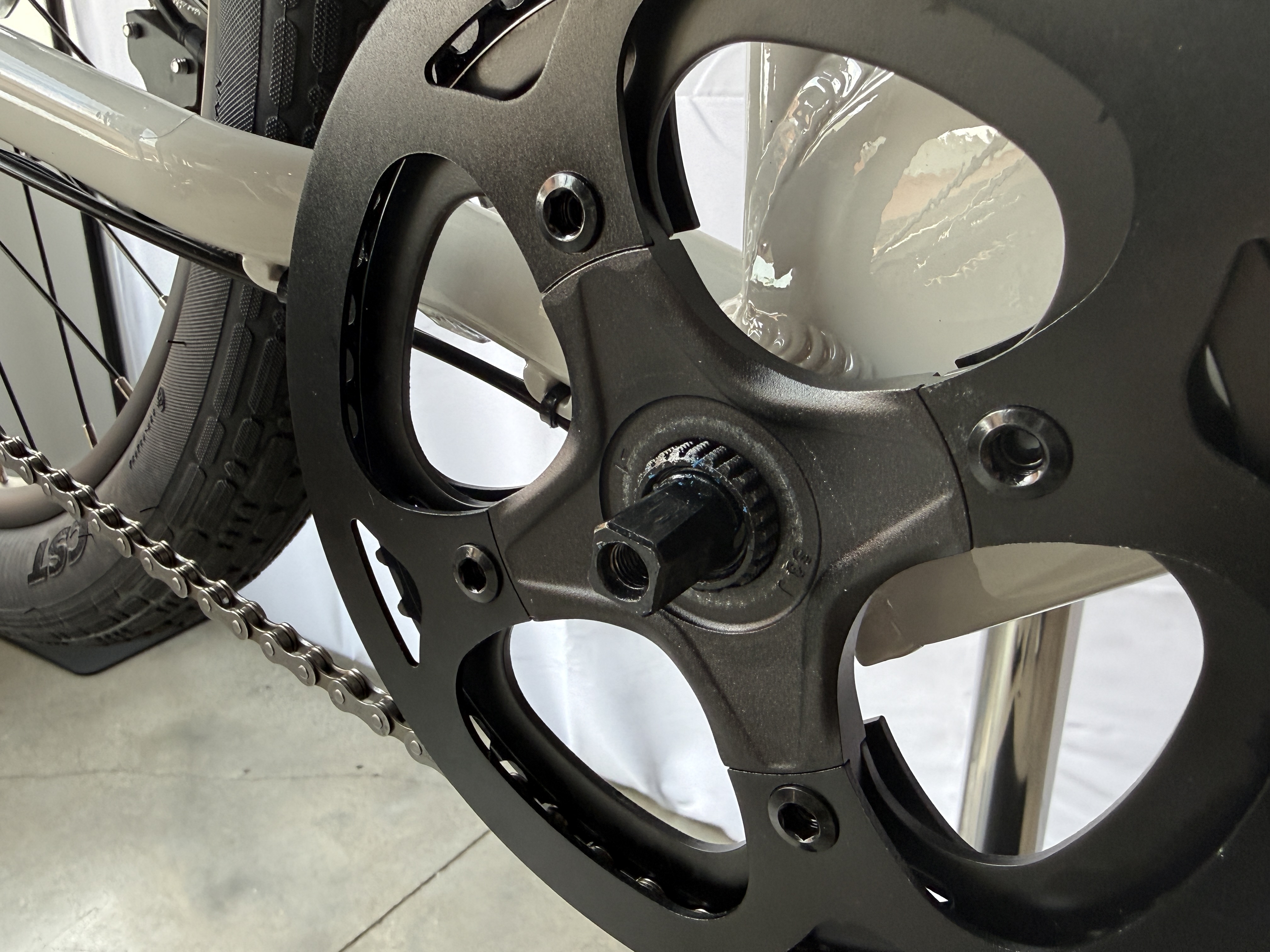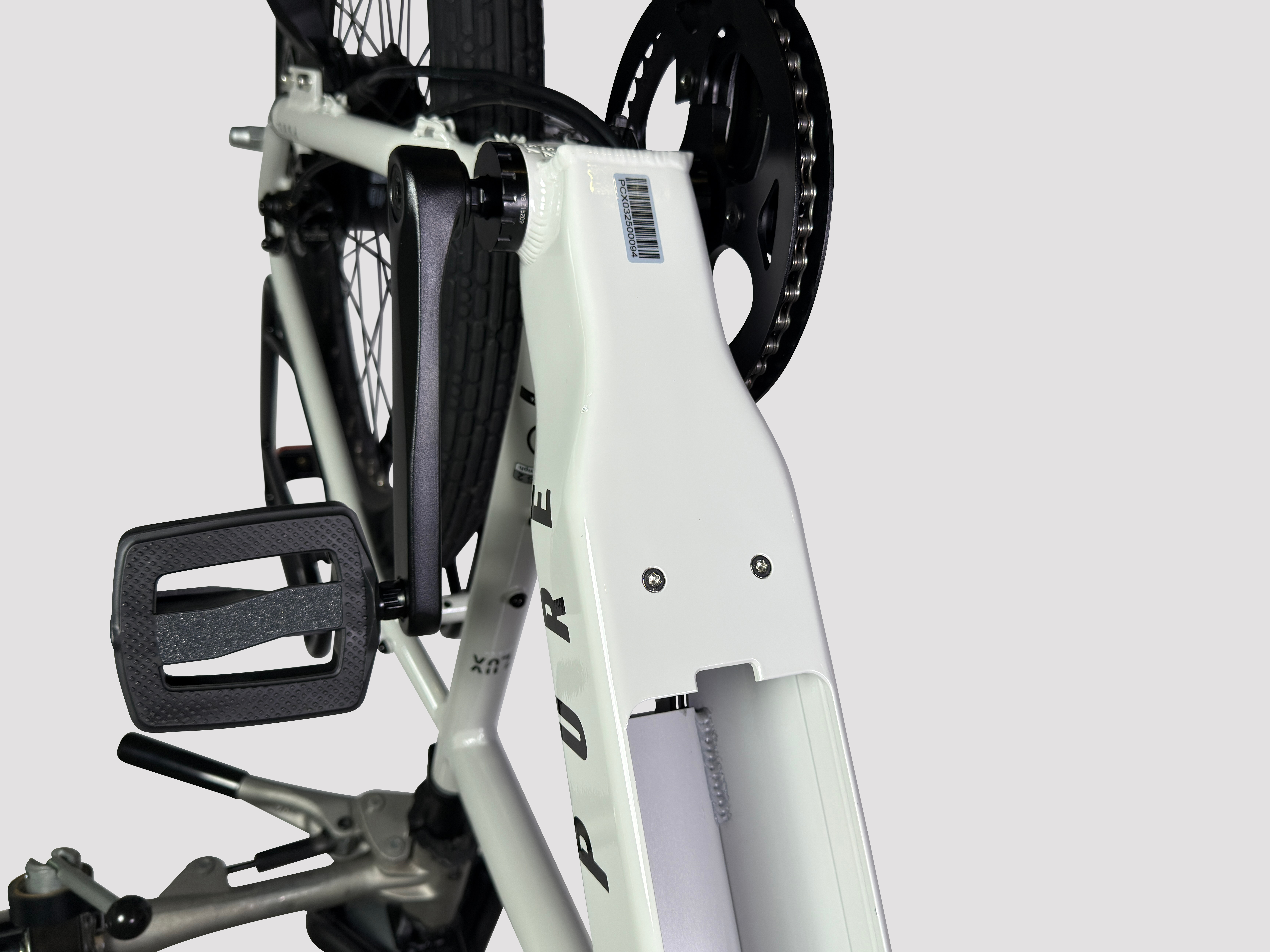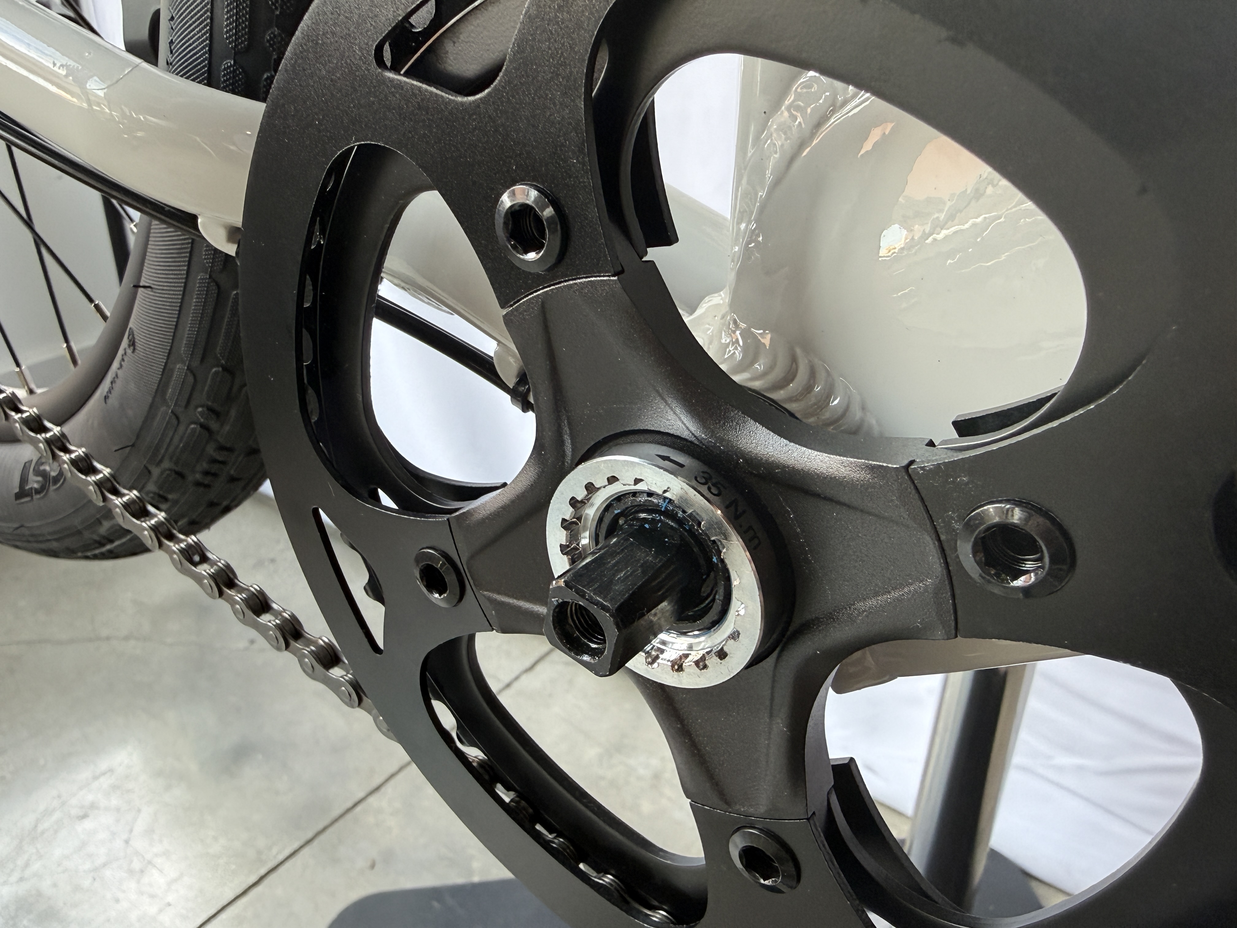 - 5. Carefully slide the bottom bracket out of the frame from the drive side. Take care note to pull too hard or too far, as the cable is connected to the controller. WARNING: Remove only enough to allow the rear light cable to pass freely through the frame.