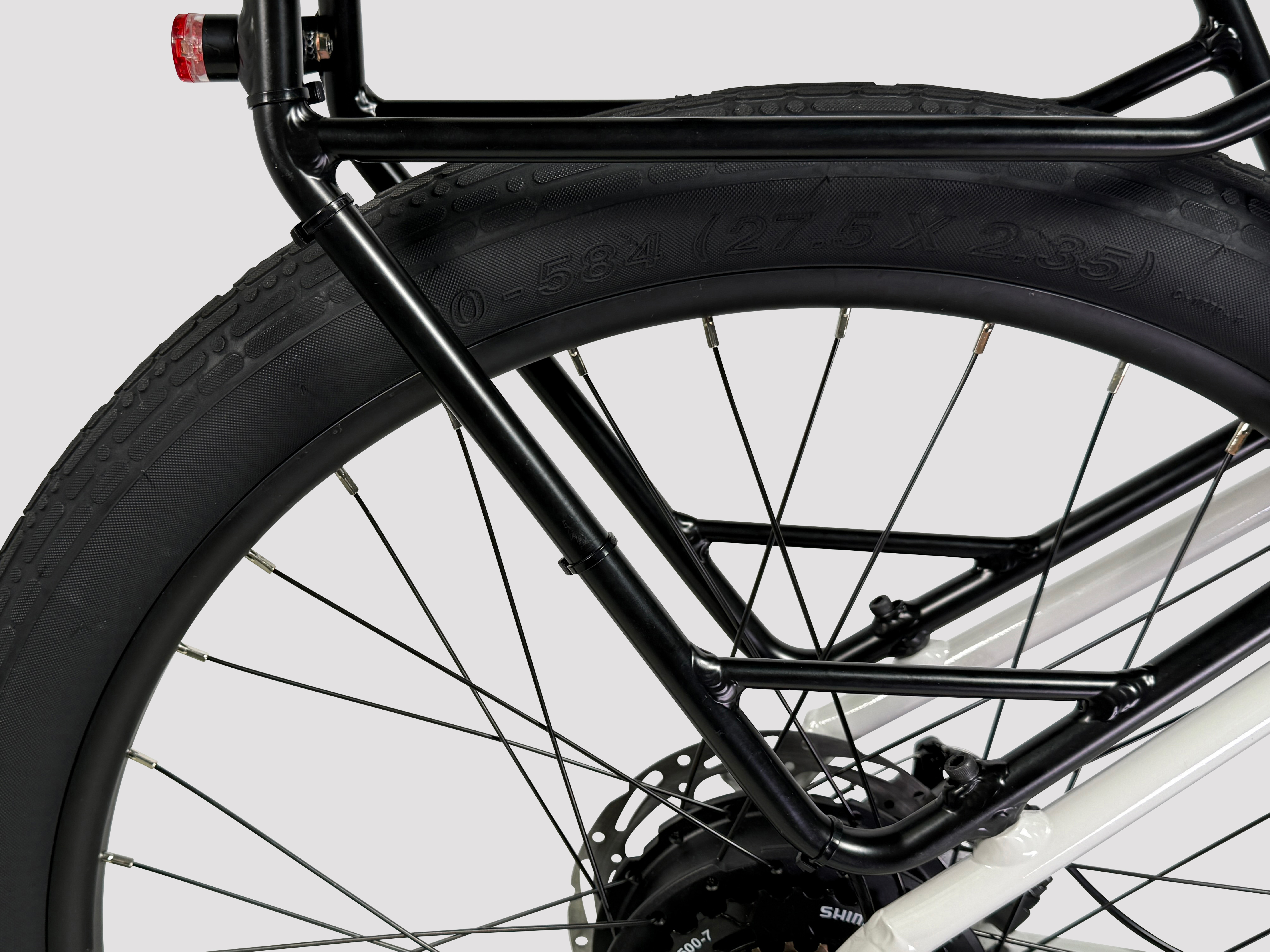 - Ensure the rear light cable is routed behind the drive-side dropout to protect it from damage during use. Verify that there is adequate clearance so the cable cannot contact the drivetrain.